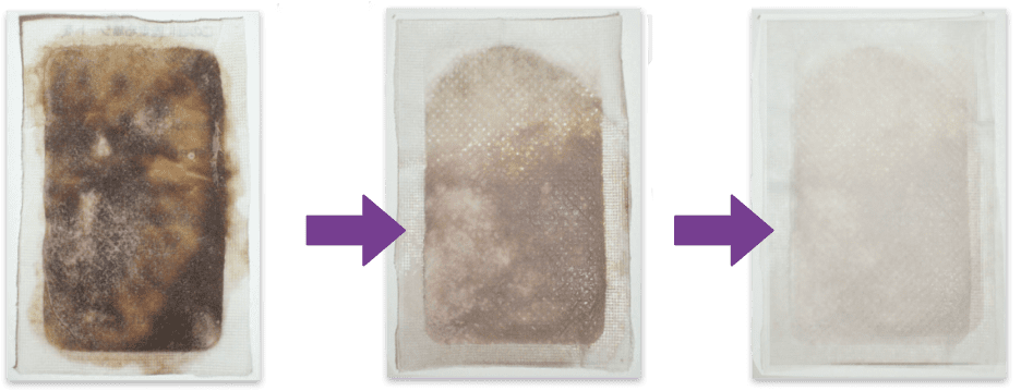 6-8時間後にパッチを剥がします。足を洗えば、違いが一目瞭然!
